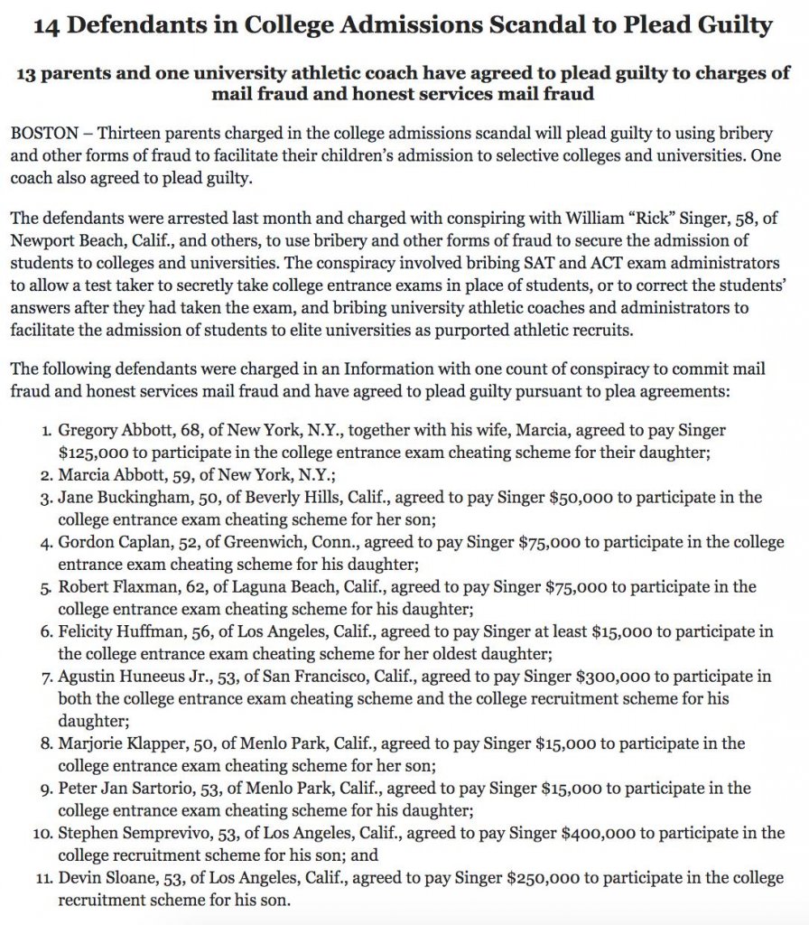 So I guess the message to all their Children is you are not good enough to get into these schools, any school you can get into just isn't good enough, look what money and power can buy you etc. etc. Heartbreaking to think they robbed a person of a truly earned spot.