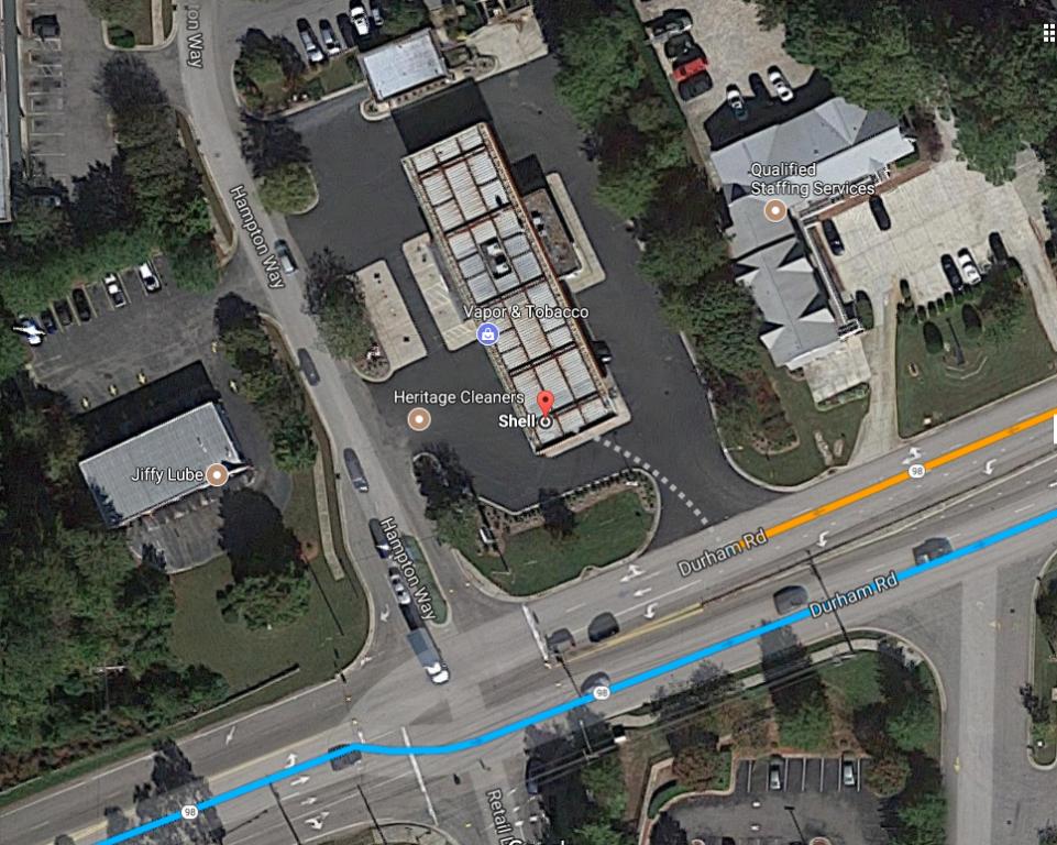 From where Allison lives, is that Shell station on the road that she would take to head north to VA or west to NC mountains?