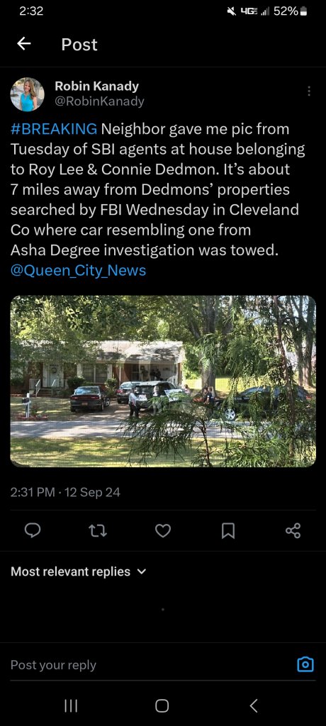 Just so you know, I know who these folks are. (I was born/raised in Boiling Springs, NC) I did live on Fallston Rd right down the road from where Asha lived when I was 18 so I knew some about the area... I bet they won't release any names till we hear more of the story of if it's him or someone else associated with him or his wife....