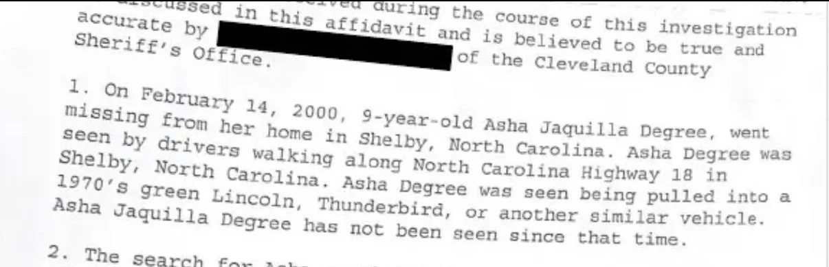 The warrants state that the last known sighting of Asha Degree was on Wallace Grove Rd., which is circled in red on the map.