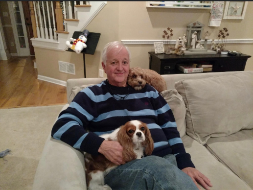 Here is a photo of Mr Poole, and the dog in his lap is the dog that is with him: