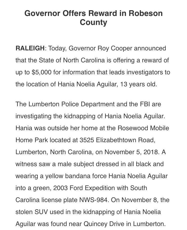 The state is offering a $5K reward for info to help find Hania Aguilar @WNCN