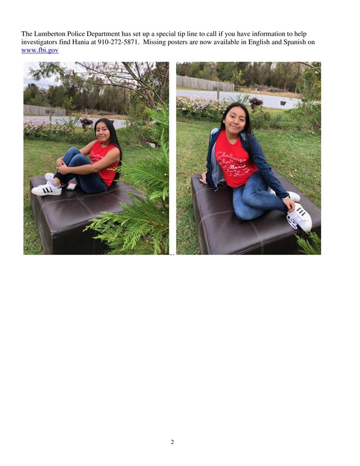 "Investigators said the SUV was found a little before 8 a.m. Thursday off Quincey Drive, about six miles outside Lumberton. Police Chief Michael McNeill said the search for Hania is becoming "more and more dire."