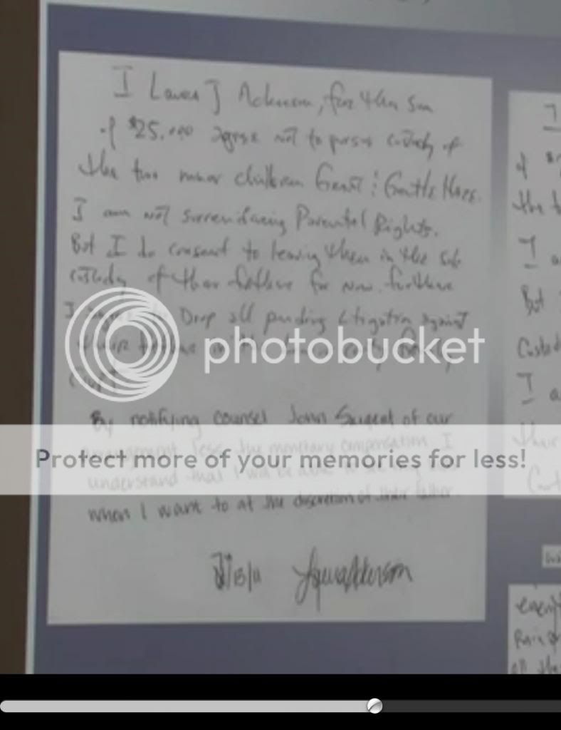 I agree Boodles, this is really troublesome. The FBI witness seemed to know her stuff but it still doesn't sit right. I proposed a theory earlier that GH lured LA with the promise of a solution to their custody dispute where he convinced her that they were moving to Kinston & if she dropped her litigation, he would give her unlimited access to kids plus $25000. He could have convinced her that it would save them both attorney fees. She had no idea he couldn't come up w/ $25000. Basically, an informal agreement between them that wouldn't require going to court. He may have told her that he was planning to go back to VI for some gigs but would leave kids with her. Think she added the last paragraph as a parachute to protect herself. For GH, once she signed this, it appeared she was "selling" her rights to the kids and he could show this and provide a possible reason for her to need some time away. It's the only explanation I can come up with for her signing the agreement. It has been testified to " just how convincing and charming" he could be when it served him. Just my opinion.