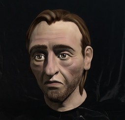 The skeletonized remains are received with the lower body clad in zipped and buttoned denim pants size 32 x 32, two black socks, blue/white plaid "Hanes" brand boxer shorts, two black socks and one slip-on, suede-like shoe on the left foot. The right shoe accompanies the body. Within the right front pocket of the pants is a key ring with a key with the letters "GM".