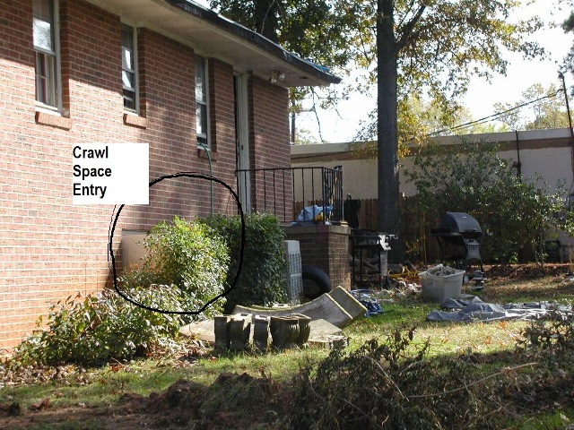 They have a dog back out at the house. They took him under the house and then brought him back out. He is now sitting beside the hole in the back that they have focused on most of the day.