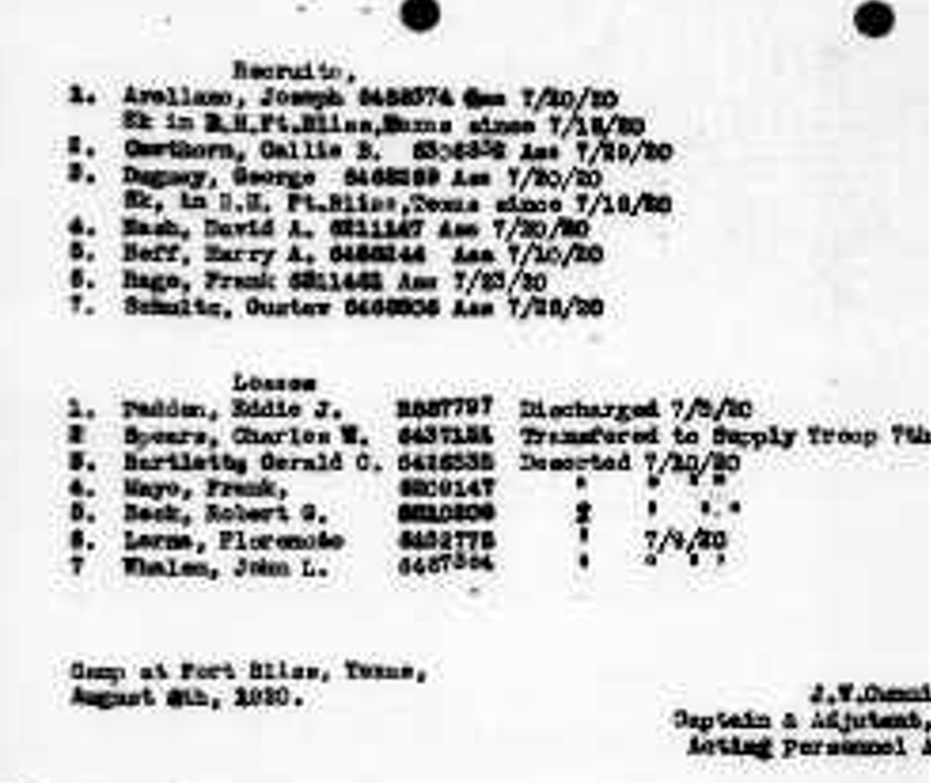 I guess the army wasn't all it cracked up to be since he deserted! I notice he deserted on the same date as a Frank Mayo; I'm assuming they left together.