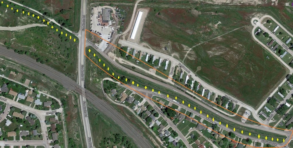 The google map is outdated but probably is a lot like it was in 2013. This was the search area. In the first one, you can see that the canal would look like a ditch in low water. Follow it along (not pictured) Owl Rd and you see it gets a start at the North Platte River, where a flash flood might be pretty swift.