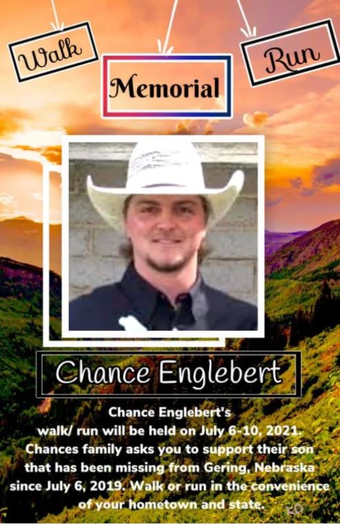 The family of Chance Englebret has organized a virtual walk, providing a way for over 30,000 people who have followed the man’s story on Facebook to be involved in remembering the man’s disappearance. Englebert went missing on July 6, 2019, during a trip to Gering. The man, who had been living in Moorcroft, Wyoming, had been reported missing after he left a Gering residence where he had been staying with his wife, Baylee, and infant son, Banks, on foot following an argument.