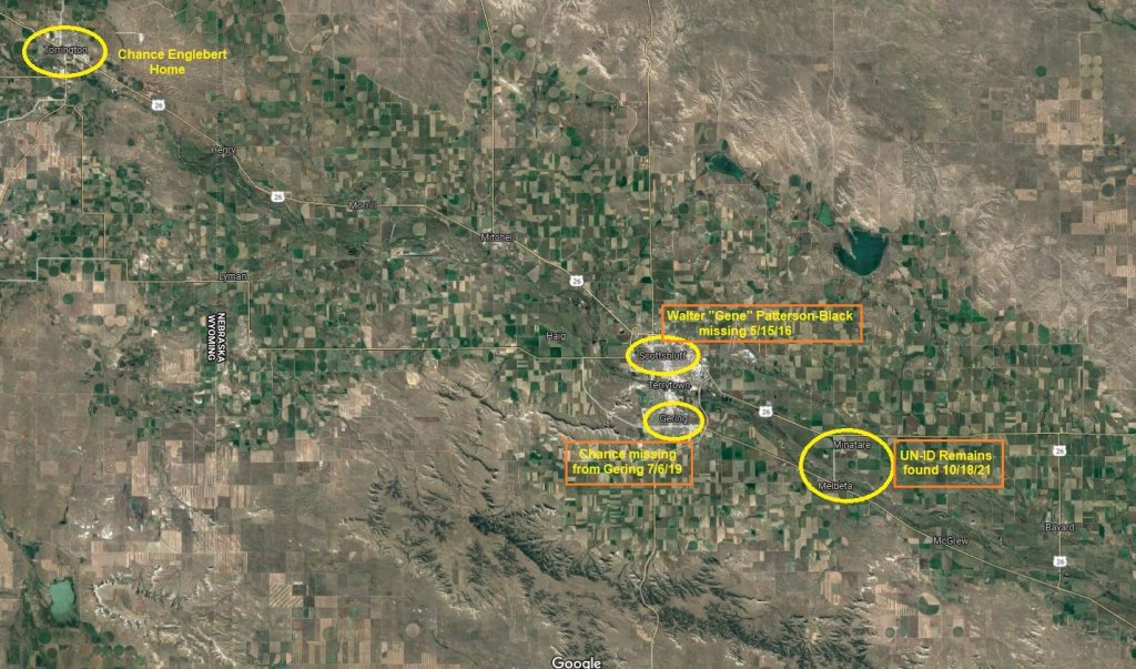 Melbeta is in between Bayard and Gering, on highway 92, and the North Plate river runs just north of that highway. If Chance fell in the river, it would have taken him that direction. Now, I personally find it unlikely that Chance fell in the river, and he was wearing a short sleeved, thinner shirt when he disappeared, if he were swept up in the river, the shirt sleeve would have been ripped off and not stayed attached to the body for very long. It’s possible his body could have ended up there some other way, but with just the information in the article, it’s hard to speculate what happened without jumping to conclusions.