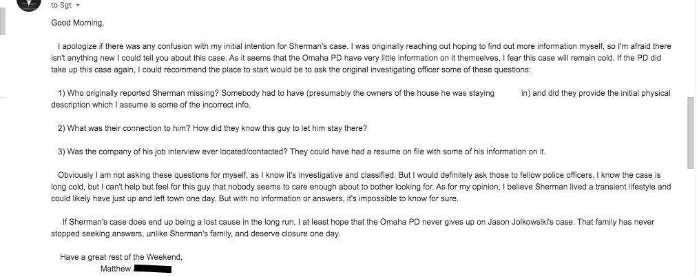 I found this article in the archives of the Omaha World Herald. It's restricted access so I screenshotted it here. Basically it describes a possible sighting of Jason at a state park more than a week after he went missing. Normally I wouldn't consider that of any relevance, but one thing I did find interesting: