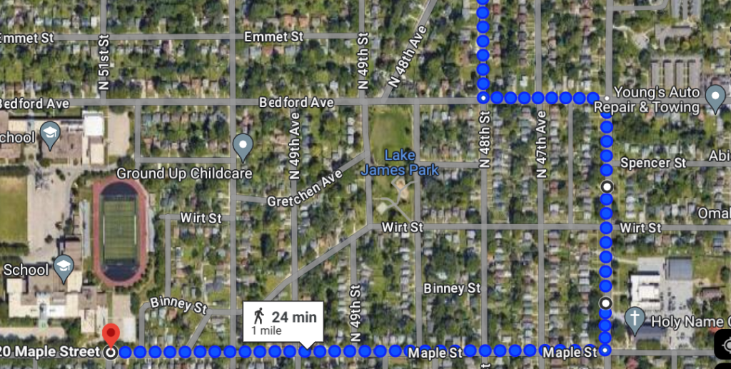 But that is actually interesting...because now I look at the map, if Jason did the route I attached to this post (route1.png), he could have had to go past the Church to get onto Maple Street (depending on if he was walking straight down N 48th St).