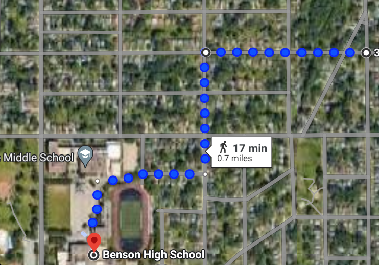 Maple Street is actually the more logical road you'd want to walk on; because Benson High School is nearer Maple S than Bedford Ave. hmm. On this route, you go past Fontenelle Blvd, which has the Church car park exposed. If someone was at the Church and offered him a lift...that could be a possibility, but we don't know if A) that's the route he did or B) he made it that far