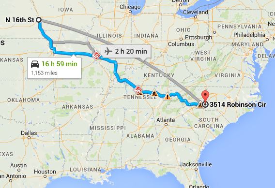 Map of (1) address where Michael was said to have last been seen - to where the UID was found.