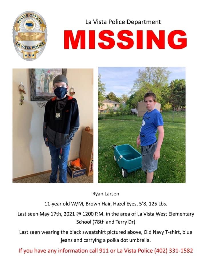 • The City of La Vista announced Wednesday afternoon they did not need any more volunteers. They said there had been no sightings and asked the entire Omaha metro to be on the lookout for Larsen.