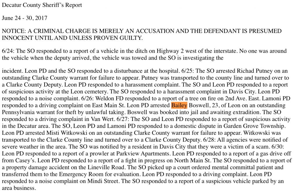 From the Leon Journal-Reporter (Decatur, where Bailey lived last year, is in Leon County.)