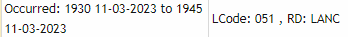 REPORTED: 11-03-2023 (FRIDAY) 1947 = 7:47pm (Call Made)