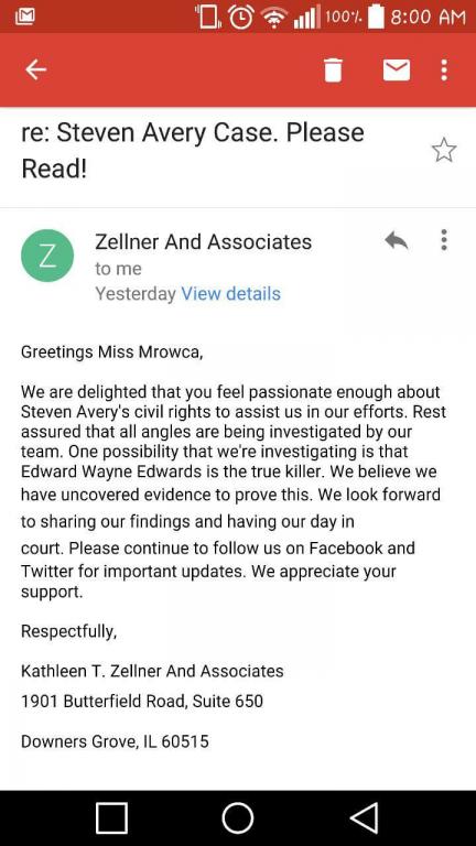 I don't even know if that email is real. Not sure Zellner (or her hired help lol) would put that out there like that?