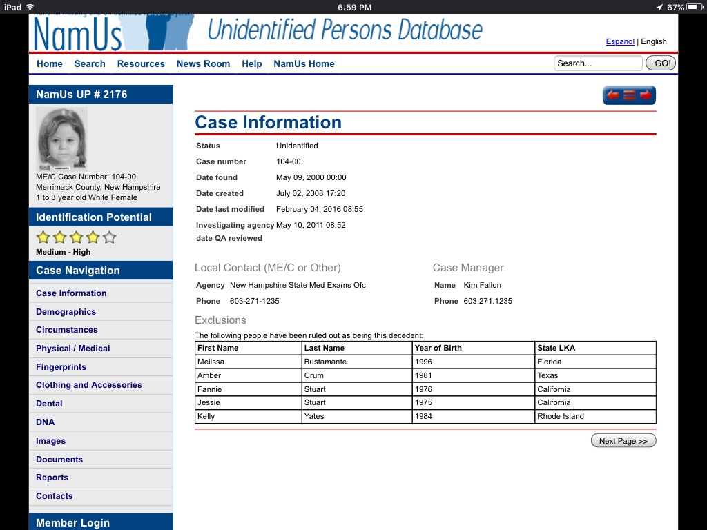 I came across this Jane Doe. I was thinking of her as the mystery mother of the child that belongs to Robert Evans... She went missing with an unnamed male friend in Manitoba Canada.. Manitoba Canada is right above Minnesota and the Dakotas which isotopes had mentioned that child had been prior to NH and lastly I feel the jane doe has a striking resemblance to Robert Evans kid