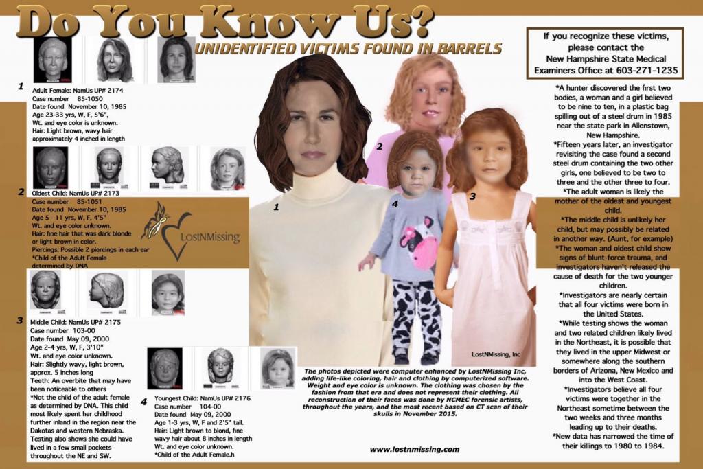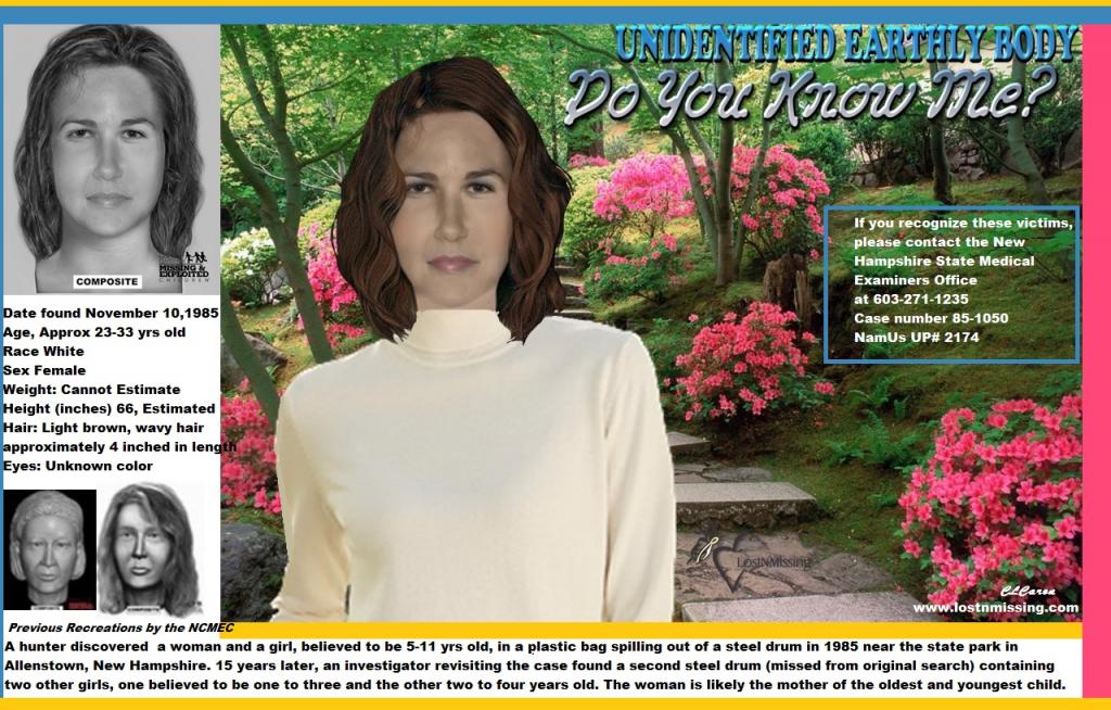 Maybe we should look into this woman missing in Arizona, using a false name? Her friend was found murdered in 1984, which makes it at the very end of the Allenstown victims' range, and no mention of whether she had a child.