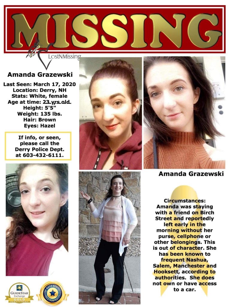 ”Amanda Grazewski was staying at a friend's house in Derry when she left early in the morning without her purse, cellphone or other belongings, according to a statement from police.