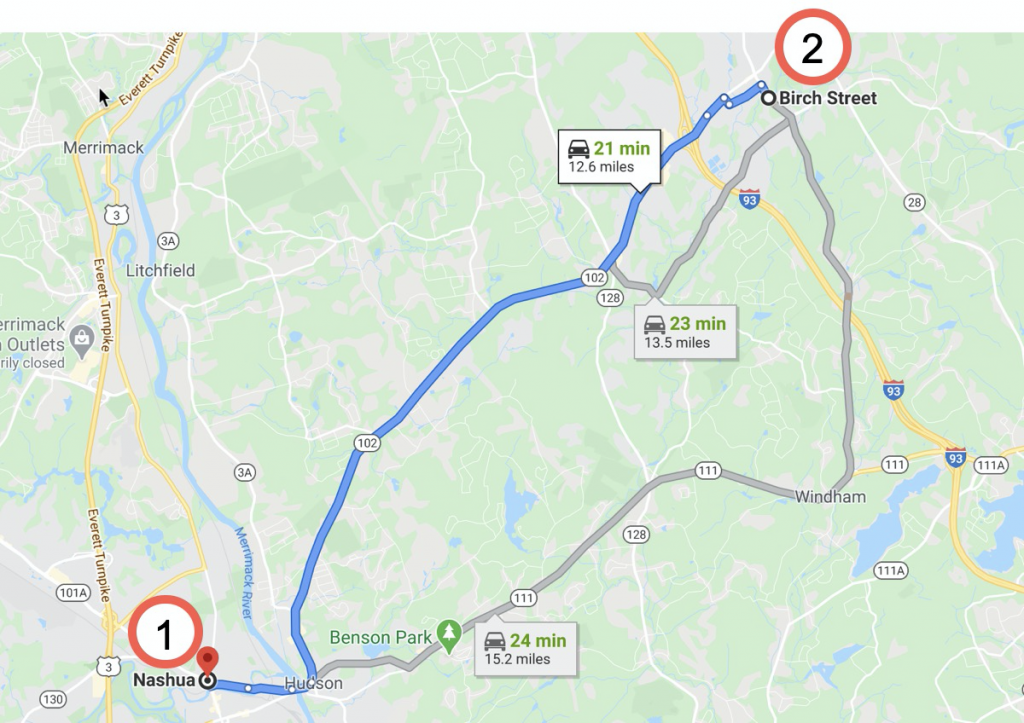 The similarity is that she disappeared on Jan 15 this year in Nashua (marker 1). Three months later and 21 minutes away, Amanda (marker 2) is missing on Mar 17 in Derry - before St Patrick's Day parties.