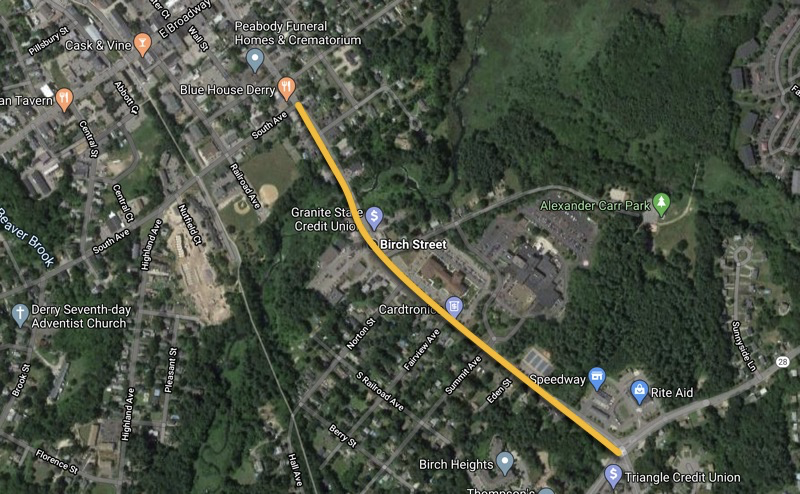 Birch Street is a main road, Route 28. There are 24-hour pharmacies at each end, and a gas station at the southern end. The hospital is on that road. Birch continues as Crystal Ave. after it crosses Broadway. Crystal Ave. has gas stations, a couple more pharmacies, and lots of fast food restaurants. Of all the roads Amanda could have been walking on in Derry in the middle of the night, Birch St./Crystal Ave. is where she would have been most likely to have been seen by someone. Some businesses on Crystal Ave probably have security cameras.