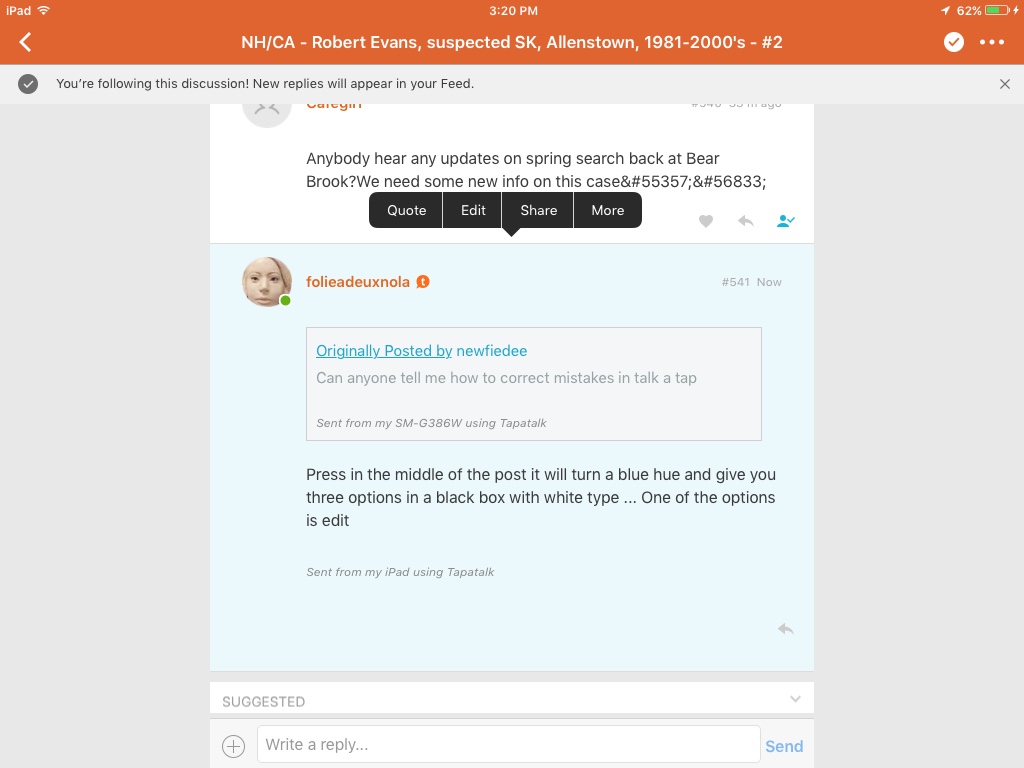 Anybody hear any updates on spring search back at Bear Brook?We need some new info on this case��