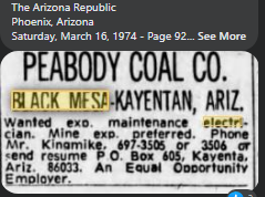 Read a news article from 1973 that stated Peabody operated their own mobile home park in Kayenta. We know TPR loved those parks...