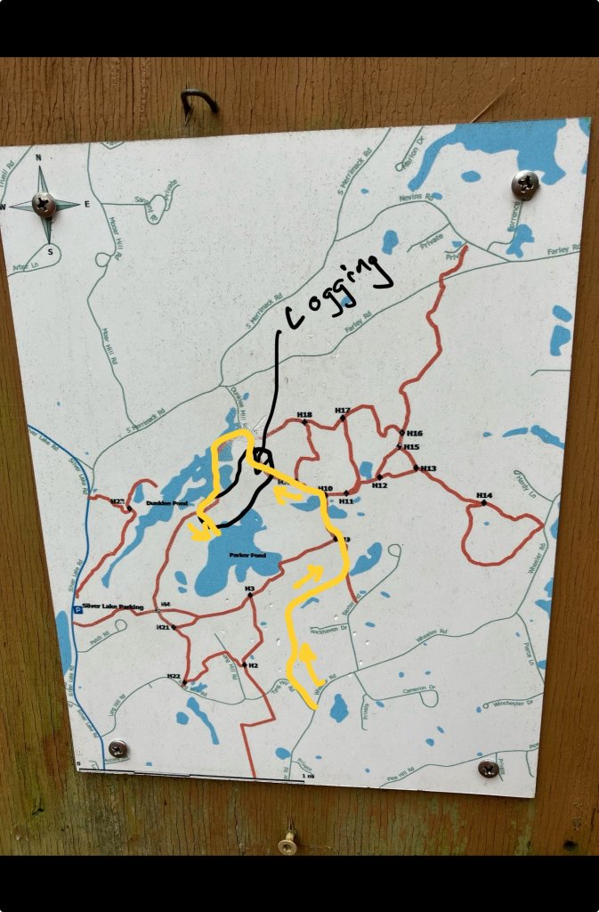 I took a bushwhack in the vicinity where I think the borrowed Oldsmobile was found. I understand it was not very far from a vehicle that currently resides there today (second photo). I’ve visited this place multiple times before. The area immediately adjacent to the abandoned vehicle is currently being logged. I walked the shoreline of both Dunklee and Parker ponds. Nothing out of the ordinary.