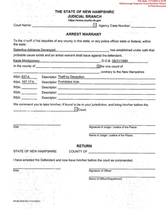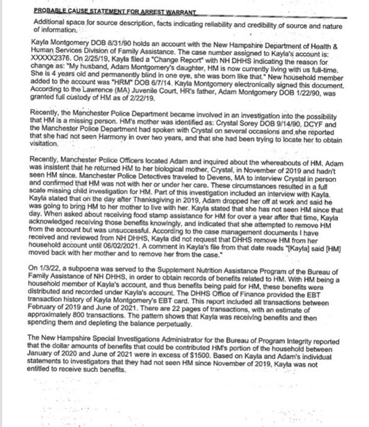NH - Harmony Montgomery, 7, Manchester, Oct 2019 *reported missing Dec 2021* Arrest* MEDIA ONLY