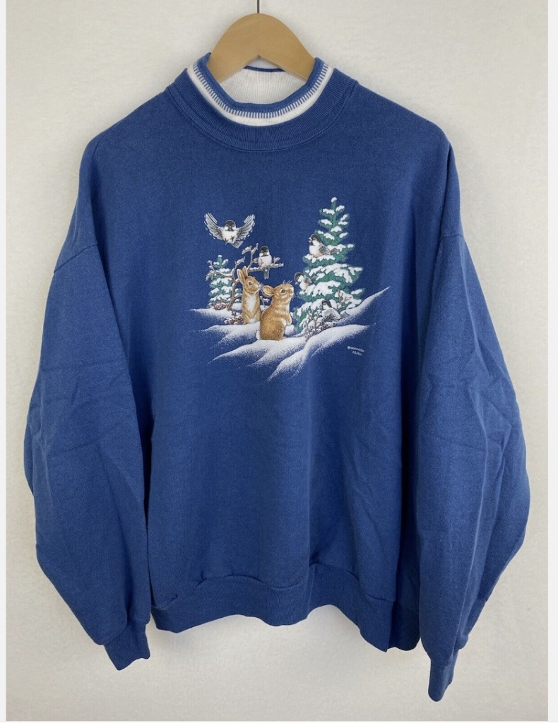 Vtg 90s Winter Screen Printed Graphic Blue XL Grandma Sweater | eBay