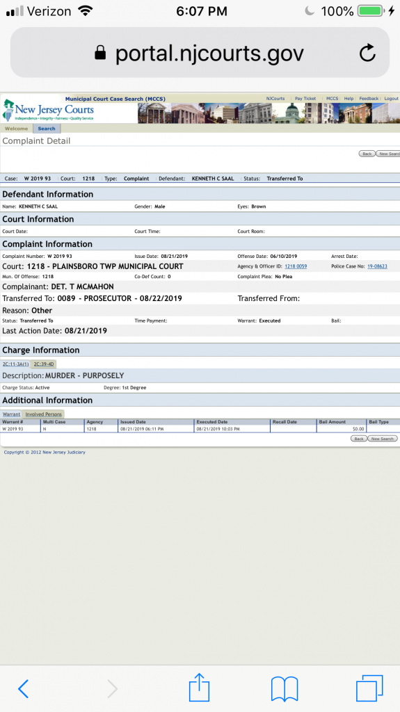 On Monday, the Middlesex County Prosecutor’s Office received the results of DNA testing found under Byington’s fingernails and found Saal could not be excluded. Investigators also reviewed video footage which captured a vehicle matching Saal’s traveling in Plainsboro on June 10 at 2:04 p.m., according to the complaint.