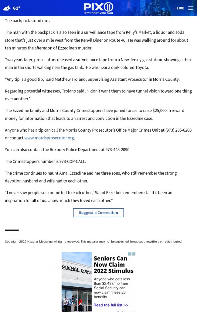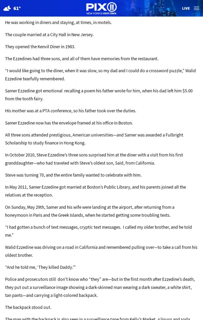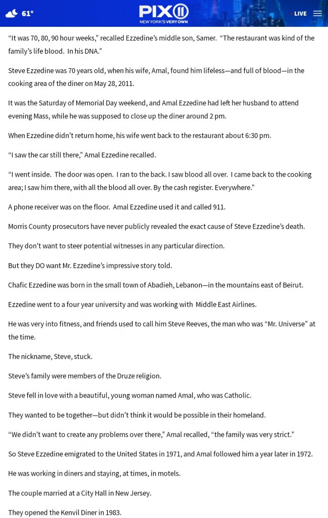Ezzeddine, 70, was stabbed to death on May 28, 2011, inside the Roxbury Route 46 diner he and his wife of 39 years owned since 1983.