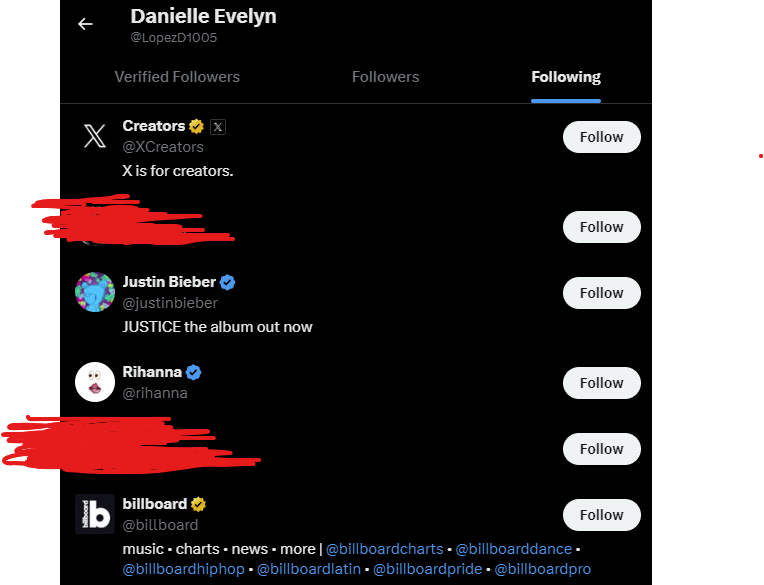 Likely they just changed the username since Twitter changed to X? Accounts are bought and sold all the time.Found something kind of interesting with her twitter account, screenshot and link below. Essentially her twitter account hasn't been used in years, looks to be around when MDL died when she stopped posting and hadn't touched it since. However, her most recent follow is "@Xcreators", this HAS to have been added within the last... what... year and change? So she's used this account or someone's logged into it since 2016, yeah?