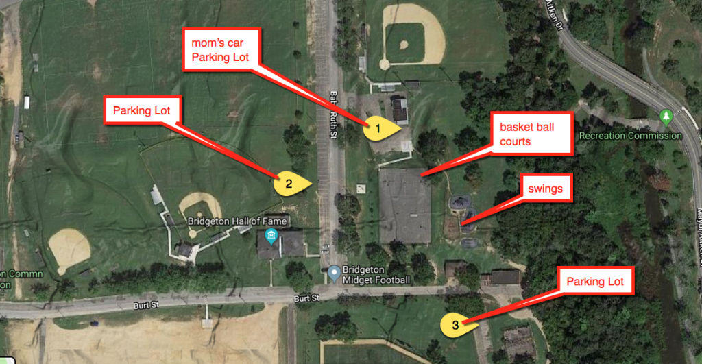 @otto, I am a map fail. Her car is parked next to a baseball field dugout- as seen in this pic, and mentioned in one of the news vids. Is this where you have it on your map??