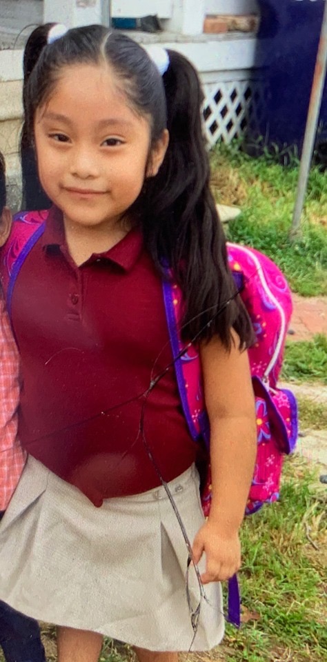 5 YEAR OLD FEMALE GOES BY DULCE MARIA ALAVEZ LAST SEEN WEARING BROWN PANTS WITH FLOWERS AND BUTTERFLIES, PINK COLORED SHIRT WITH LONG SLEEVES AND WHITE DRESS SHOES. LAST SEEN IN BRIDGETON PARK AREA. IF YOU HAVE ANY INFORMATION PLEASE CONTACT 856 451-0033 AS SOON AS POSSIBLE
