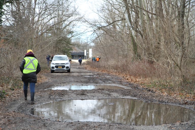 A group of 12 volunteers used walking sticks to move damp leaves and brush from a desolate road that stretches into a wooded area a quarter of a mile from Bridgeton City Park where Dulce was last seen.