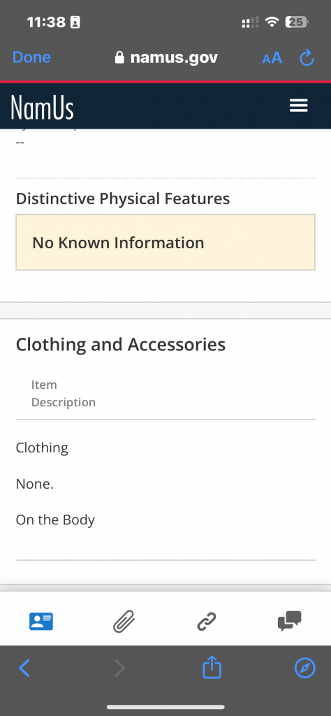 Bumping up with NamUs profile: