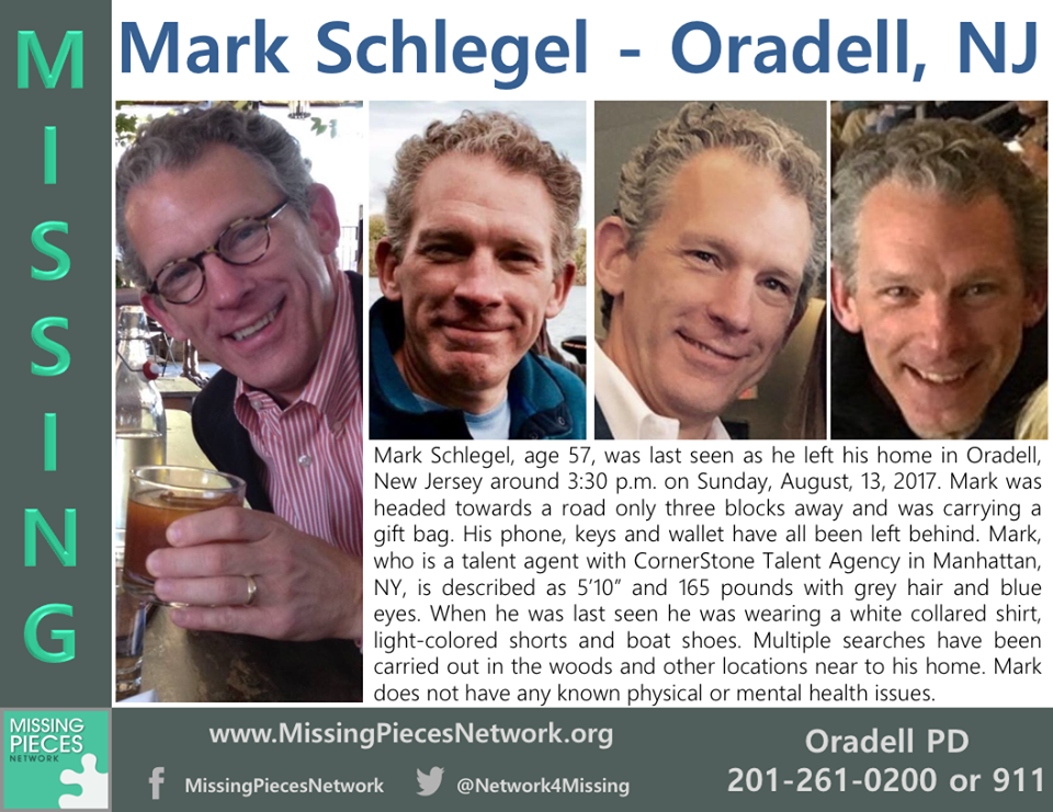 Mark Schlegel, 57, was last seen walking from his home in Oradell around 3:30 p.m. Sunday, police said.