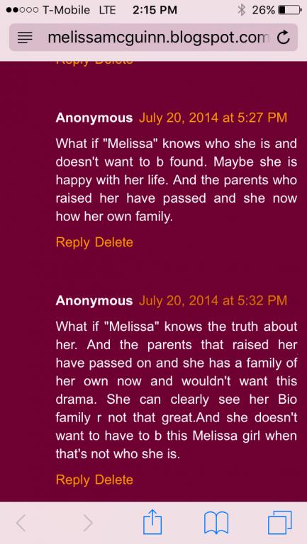 Google map linkThursday, March 6, 2014 - Becky House waits in vain for an answer to her knock on the door at 637 Lamberton St., in Trenton, NJ, the home where she lived 26 years ago when her 7-month-old Melissa Diane McGuinn went missing at the hands of a woman who had been living with her. House since moved to Arkansas and traveled back to Trenton for the anniversary of her daughter's disappearance.