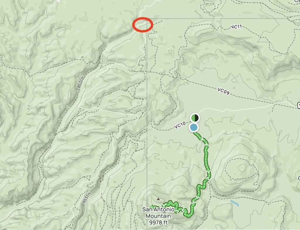 Edit - it is curious that she was on State Road 144 if she wanted to hike San Antonio Mountain. From there you have to do a lot of extra walking to get to the trail. She could have taken VC09 and driven right to the trailhead. Did she take a wrong turn?