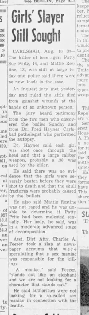 Mattie Restine and Patty Pritz were teenage friends who met a cruel end. Their case remains unsolved 5 decades later. What really happened to Mattie and Patty?