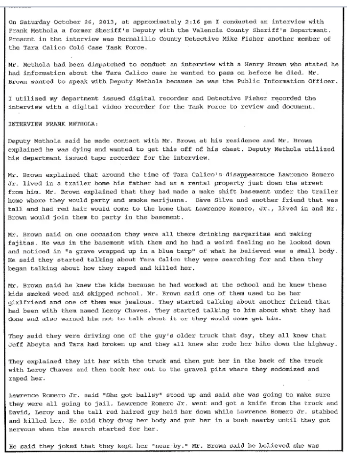 In 1998, a judge deemed Calico “deceased,” ruling her death a homicide, according to reporting by Albuquerque television station KOAT, and a sealed search warrant “relevant to the case” was executed at a home in Valencia County in the fall of 2021.