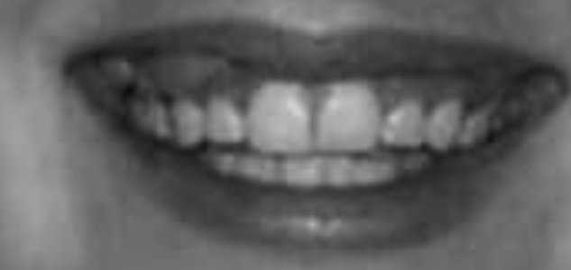 what it is I am viewing in the most reason photo of her smile. Is that scarring like keloids or dental equipment I am seeing? A lot of orthodontic work was done I can see that.