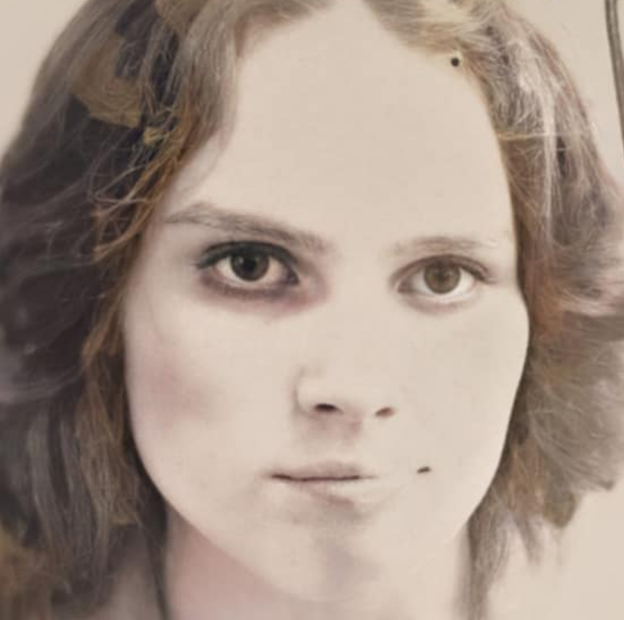 It does not especially look like her? I think. It was according to family taken in July 81. She would have been 14 or 15? in this image. Hair looks brown (could have been poor lighting?) Lips looks smaller- Nose looks like it is further from the lips than in other images. and more narrow The eyebrows also looks different to me. Browline higher Hers brows further out from her eyes. That being said, she could have plucked to own delight. Chin is more square and prominent? less rounded where it points down. Placed another image beside it which is similar, but you can tell the difference? Maybe I am just seeing things :|