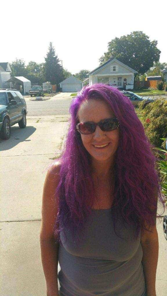 Michelle Richan has bright purple hair and drives a 2000 gold/tan GMC Jimmy Envoy. Utah in God we trust plate # 2C5JW.