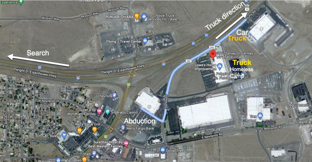 Regarding the most recent Gray Hughes youtube, I disagree with him regarding the location of the truck. Per GH, the truck location (orange on map) is right next to the place where the car was found.
