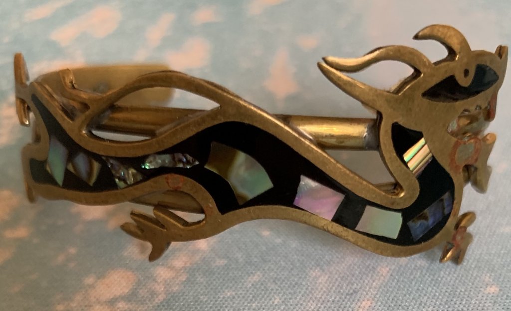 I don't know if anyone has posted this or seen it but I thought it was worth posting. I was trying to research the Abalone Dragon bracelet and the closest I came up with was Abalone Dragon earrings that look like the Bracelet . I found it on Esty...