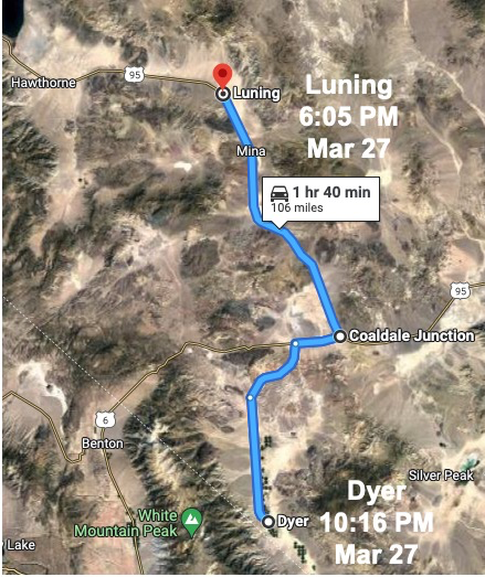 Does that mean that they intended to overnight near Luning, or that they intended to drive 4 hours after sunset to Dyer? They are aged 69 and early 70s.